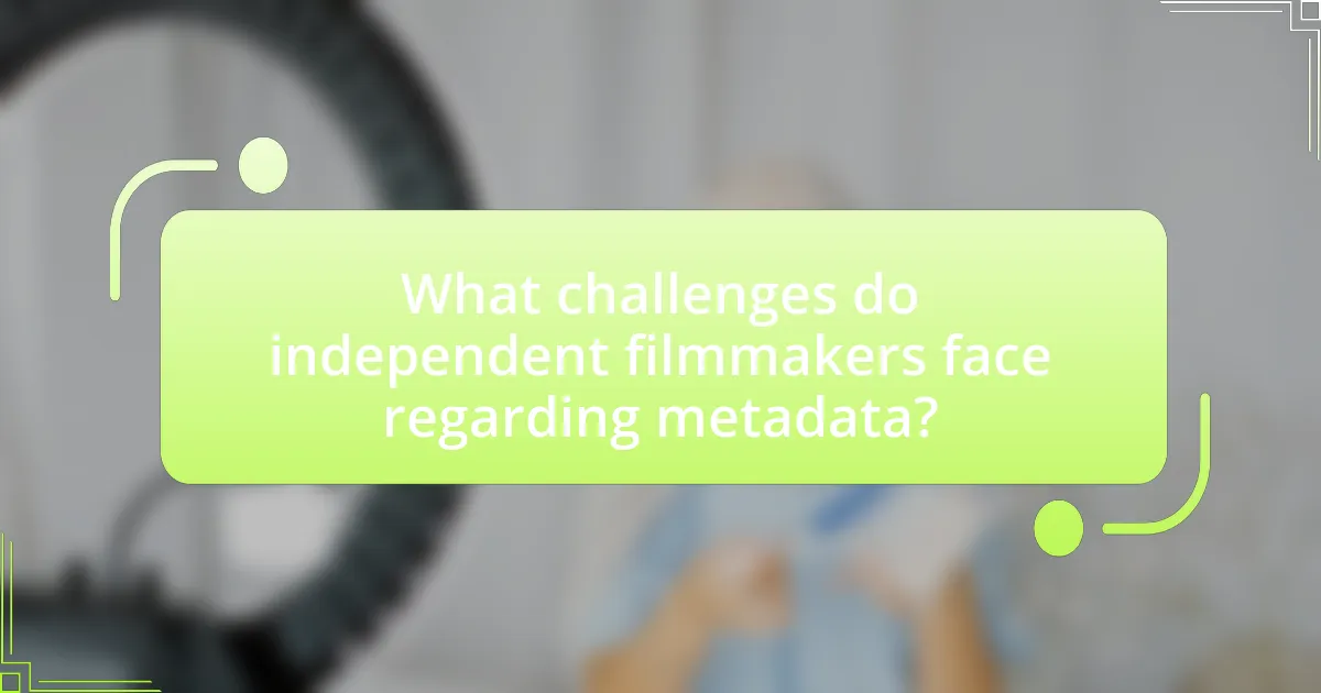 Independent filmmakers face significant challenges regarding metadata, primarily due to limited resources and expertise. Many independent filmmakers lack the technical knowledge required to effectively create and manage metadata, which can lead to improper categorization and reduced visibility in distribution platforms. Additionally, the absence of standardized metadata practices across various platforms complicates the distribution process, making it difficult for filmmakers to ensure their films are accurately represented and easily discoverable. According to a study by the International Federation of Film Producers Associations, 70% of independent films struggle with metadata issues, impacting their reach and audience engagement.